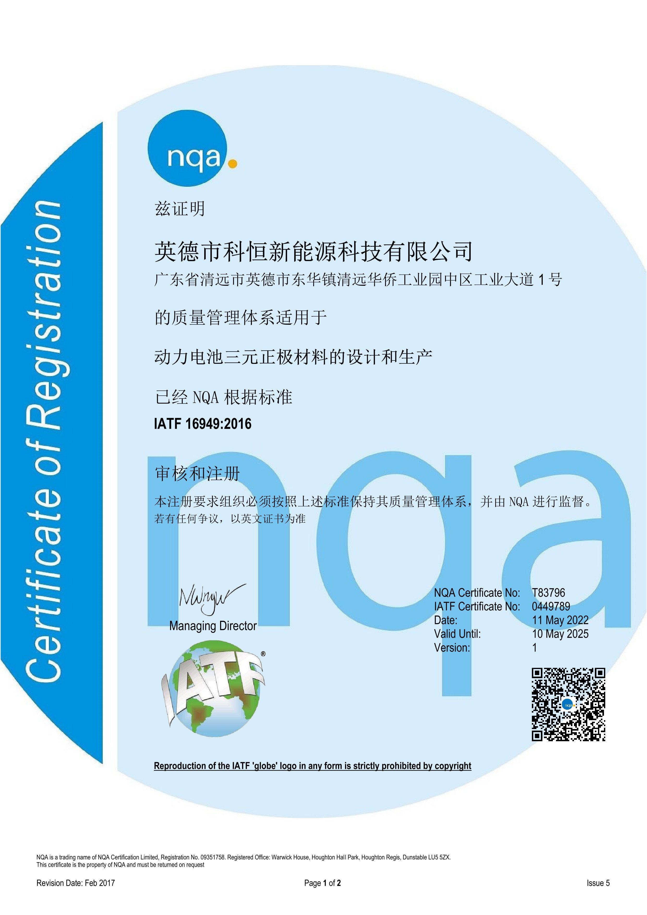 科恒堅持“科技卓越、永恒追求、質(zhì)量第一、客戶(hù)至上”的質(zhì)量方針,設立各級質(zhì)量控制體系,保證產(chǎn)品質(zhì)量。公司先后通過(guò)了ISO9001質(zhì)量管理體系認證和ISO14001環(huán)境管理體系認證。公司以滿(mǎn)足客戶(hù)需求為宗旨,以卓越的科技成果、完善的制造過(guò)程,制造一流的產(chǎn)品、增值的服務(wù)、共享的價(jià)值,讓客戶(hù)滿(mǎn)意。
